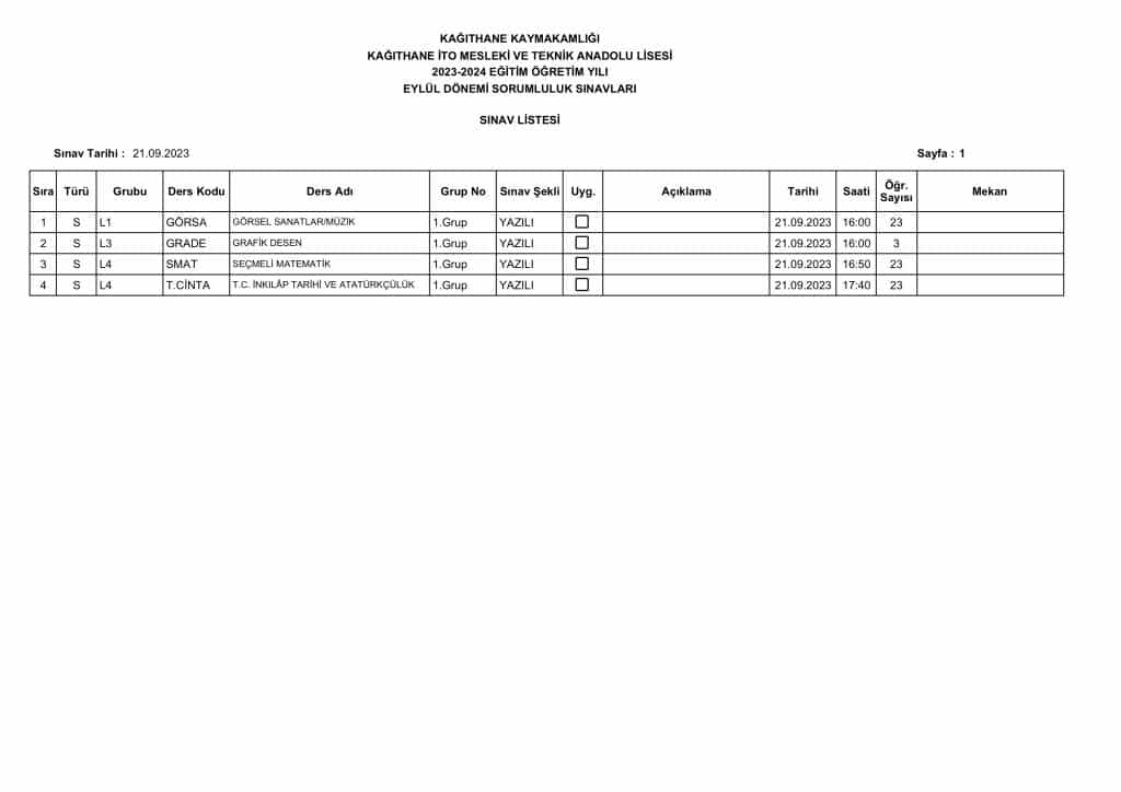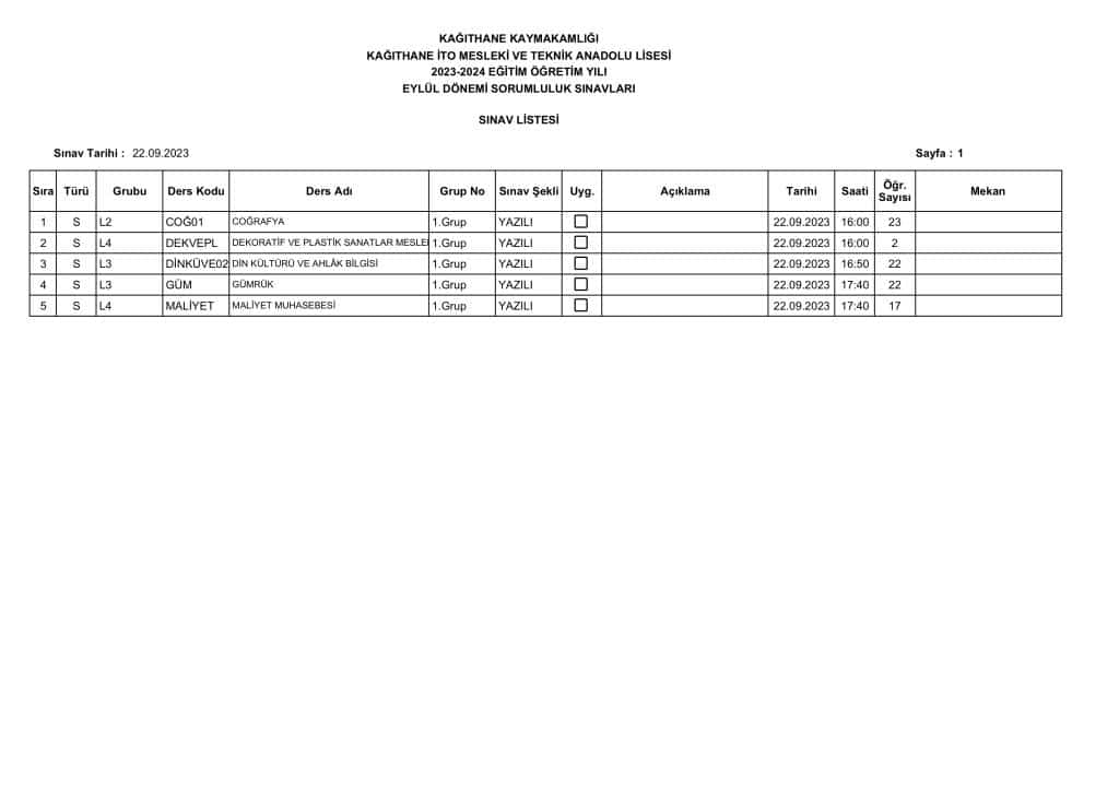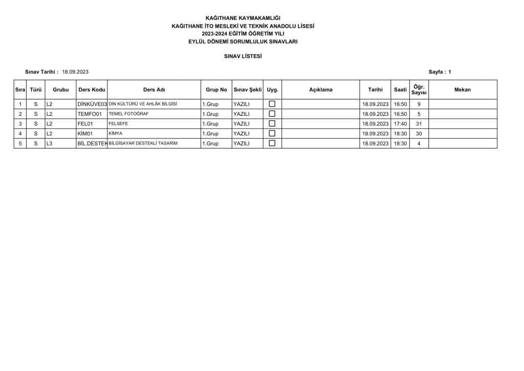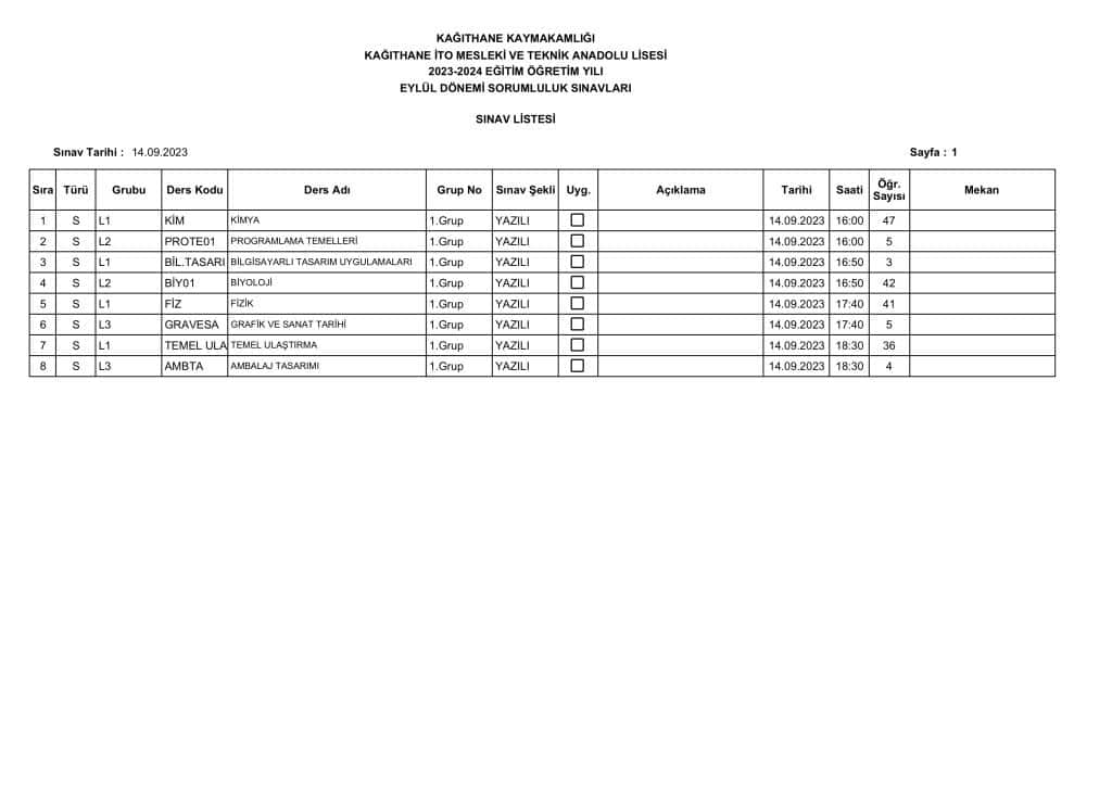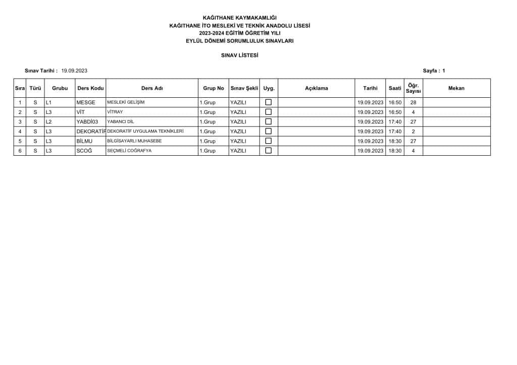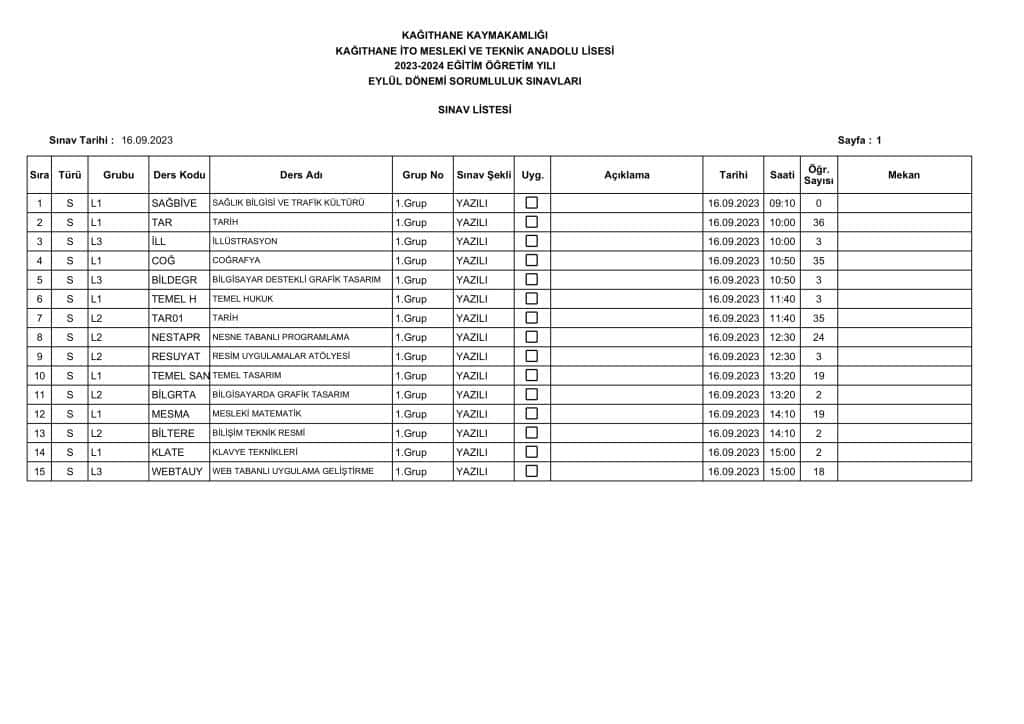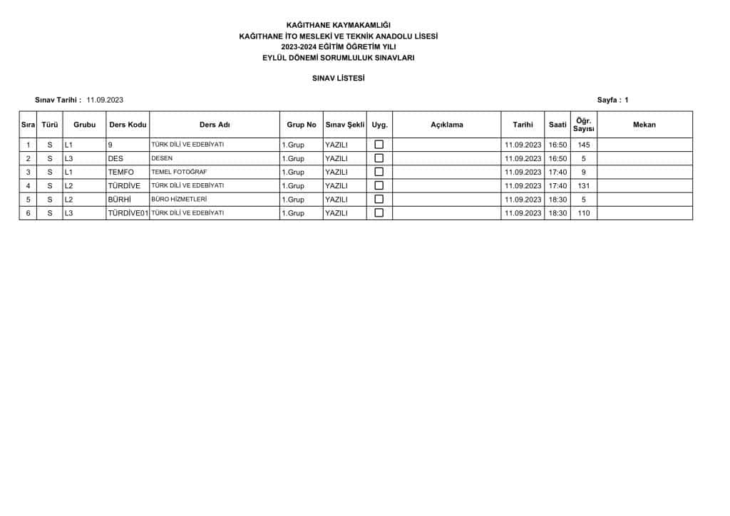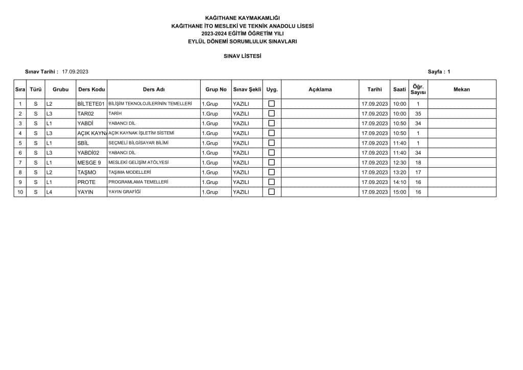 2023/2024 Tek Ders Sorumluluk Sınav Takvimi
